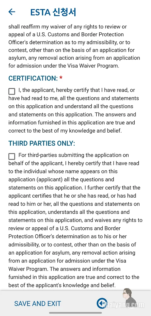 그렇기 때문에 만약 제대로 된 공식 사이트를 찾는게 불안하다고 생각하신다면 가장 깔끔하게 ESTA 모바일 앱을 다운 받으셔서 신청 하시기 바랍니다.