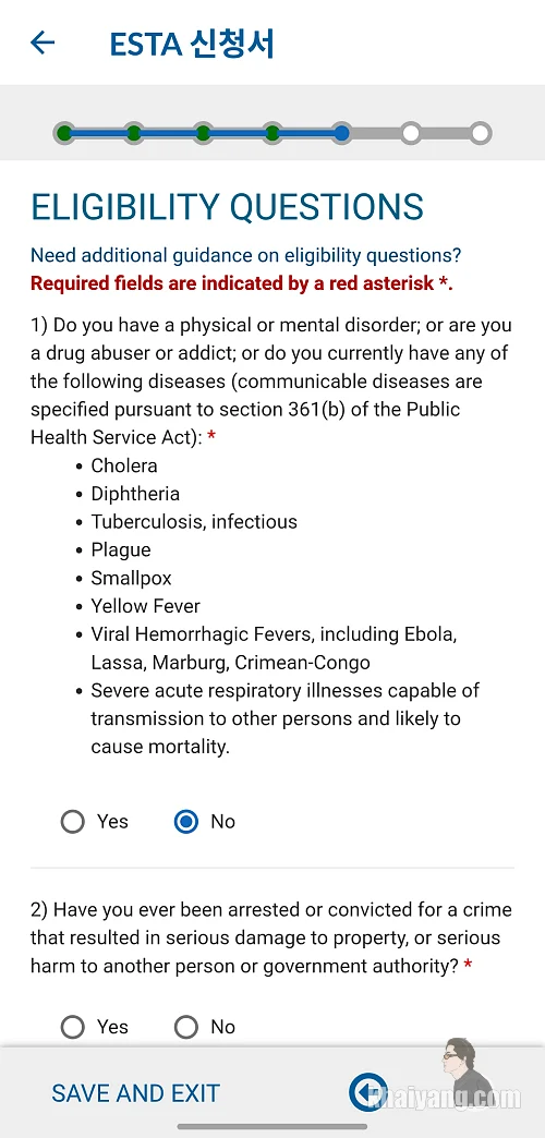질병과 범죄에 관련된 항목인데 본인에게 해당하는 부분은 정직하게 체크 하세요.
