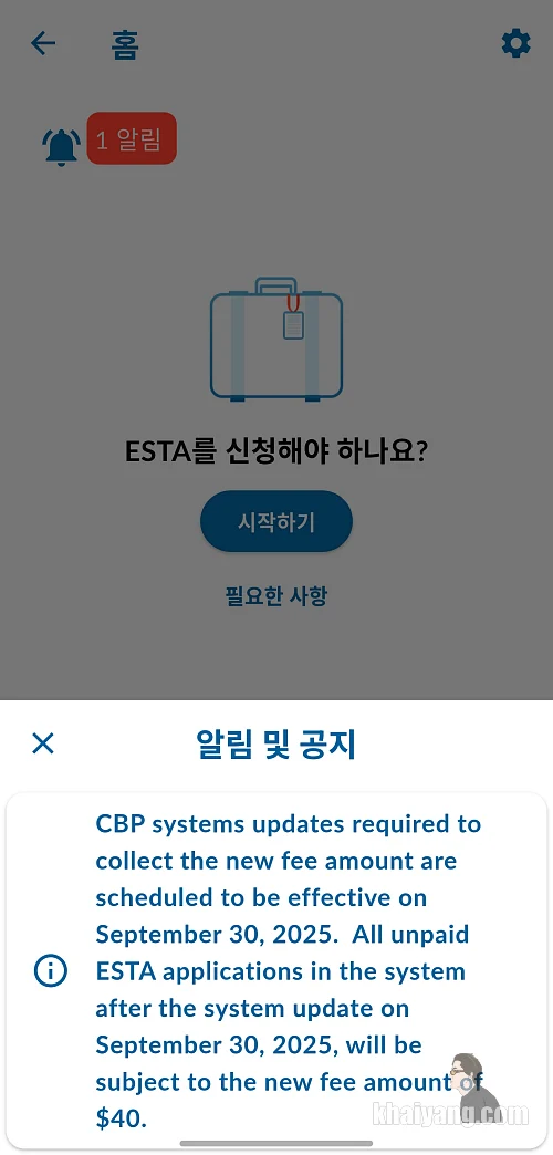 참고로 이스타 신청 비용이 기존에는 21달러였는데 2025년 10월 1일 부터 40달러로 두배 가까이 인상이 되었습니다.