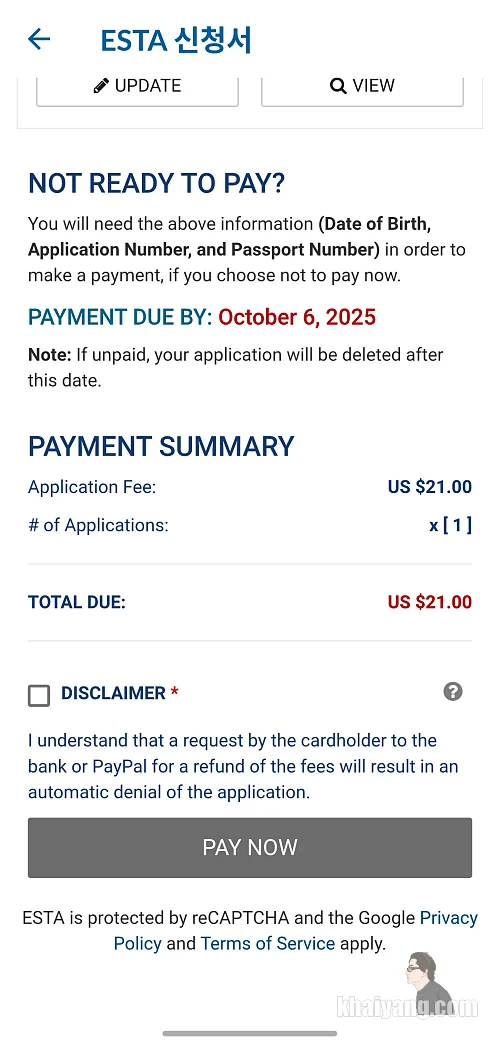 지난번에 미국 이스타(esta. 여행허가전자시스템) 신청하려다가 이상한 대행 사이트 들어가서 사기 당한 이야기를 한적이 있습니다. 원래 금액보다 5배에 가까운 금액으로 사기를 당해서 이런 저런 해프닝 속에 그래도 결국 환불을 받았습니다.