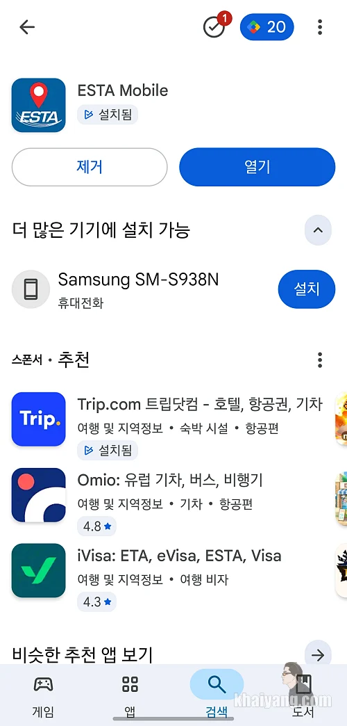 삼성 갤럭시 스마트폰 사용자는 구글 플레이 들어 가셔서 ESTA Mobile 앱을 검색해서 다운 받고 설치 하세요.