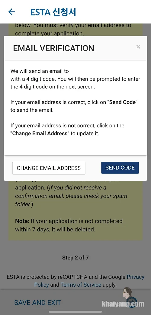 이메일 인증하는 부분이 있는데 사용하시는 이메일을 입력하고 이메일 주소가 맞으면 SEND CODE 버튼을 누릅니다.