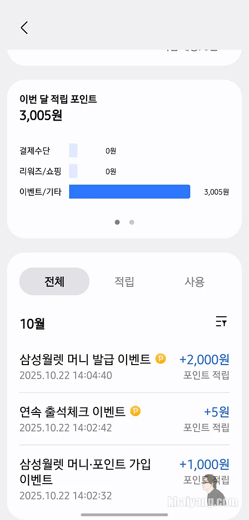 삼성월렛 머니.포인트를 만들고 가입을 하면 이벤트로 3천원을 주는 행사가 진행 중입니다.