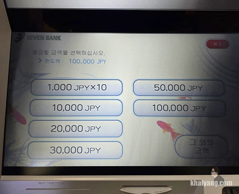 신기한게 첫날 돈을 인출할때는 이 화면이 나오지 않았습니다. 저도 일본에서 ATM 인출 하면서 처음으로 본 화면이라 당황을 했습니다.