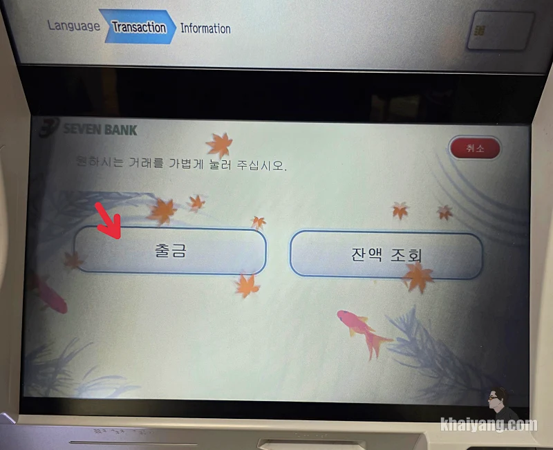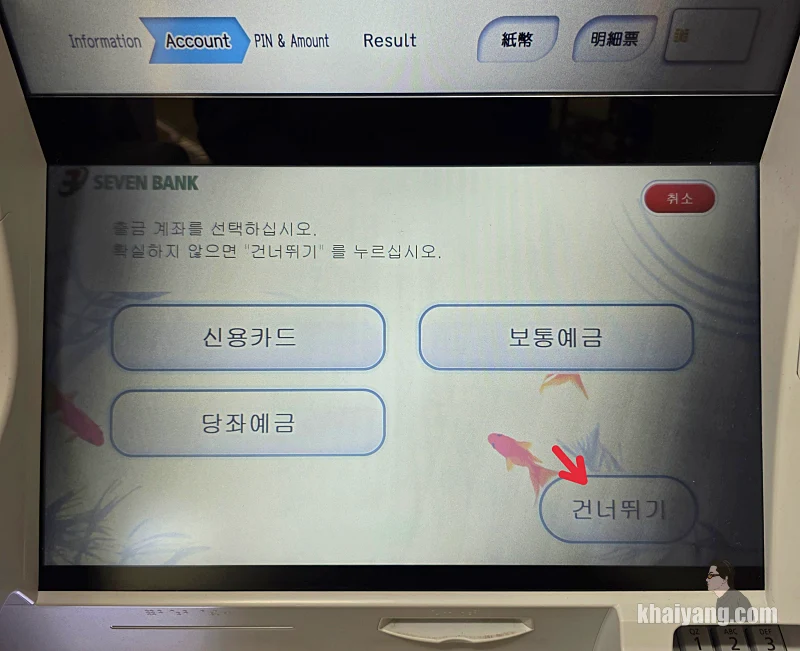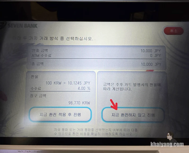 신기한게 첫날 돈을 인출할때는 이 화면이 나오지 않았습니다. 저도 일본에서 ATM 인출 하면서 처음으로 본 화면이라 당황을 했습니다.