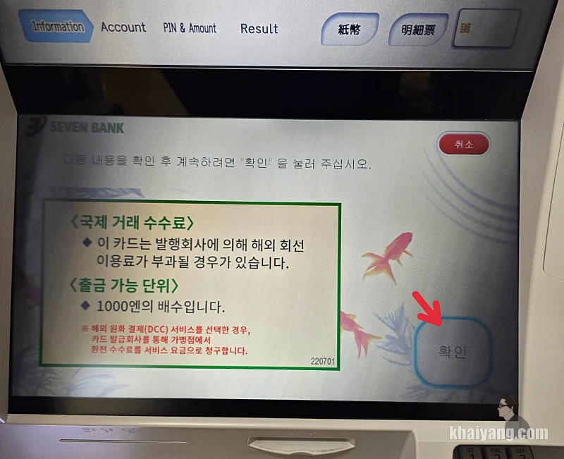 희한하게 첫 날 가서 인출을 할때는 예전에 인출할때와 동일 했는데 그 다음날 인출을 할때 보니까 ATM 화면에 표시되는게 달라져서 상당히 당황한 기억이 납니다.