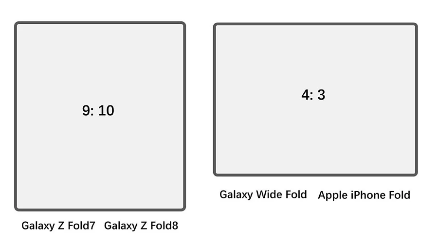 여기서 흥미로운 점은 삼성에서 아이폰 폴드 비율에 맞춘 새로운 사이즈의 갤럭시 와이드 폴드가 출시될 가능성이 있다는 것 입니다.
