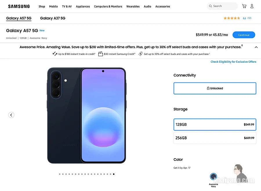 갤럭시A57은 이달부터 미국 등에서 판매가 시작되었습니다.